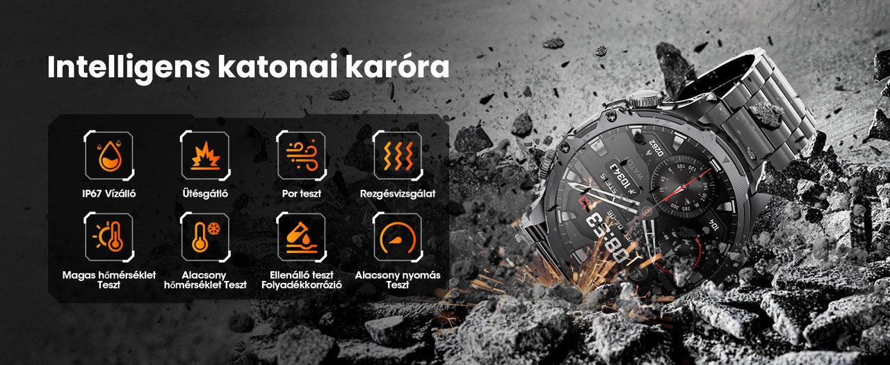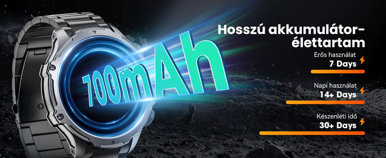 Vízálló teljesítmény: IP67 vízálló kialakítás, különféle környezetekben használható, de kérjük, ne használja a következő környezeti feltételek mellett: forró víz, búvárkodás, szauna stb. A beépített 700mAh-s akkumulátor támogatja a gyors töltést, a nagy akkumulátorkapacitás és az alacsony energiafogyasztás pedig meghosszabbíthatja az óra élettartamát.