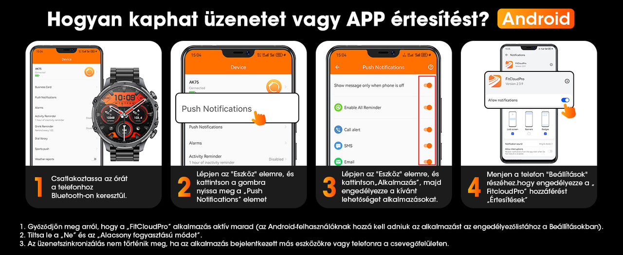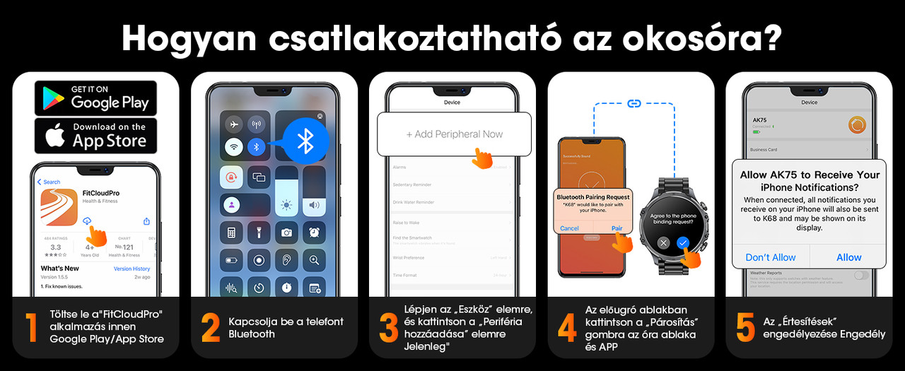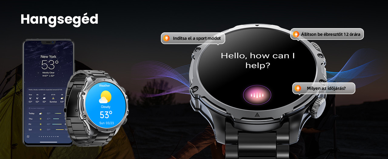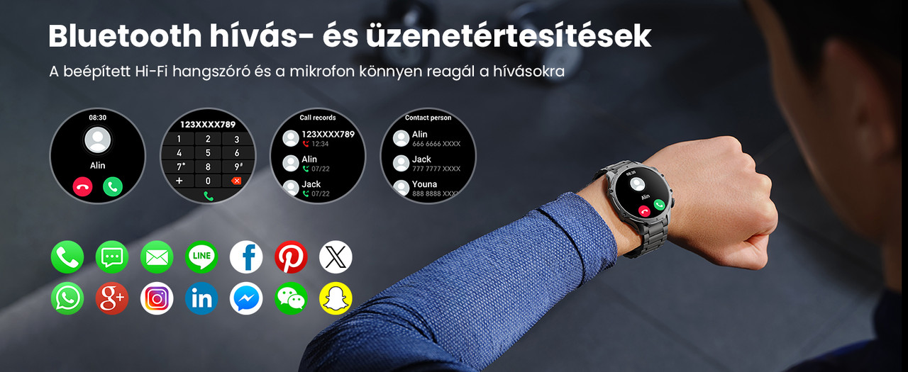 Intelligens információemlékeztető: Egyszerűen csatlakoztassa telefonját az órához, hogy valós idejű információemlékeztetőket kapjon a szoftvertől, hívásokat kezdeményezzen és fogadjon, valamint hangasszisztenseket használjon a kényelmes szolgáltatások nyújtásához. Támogató üzenet emlékeztető, okosóránk kompatibilis az Android és iOS okostelefonokkal.