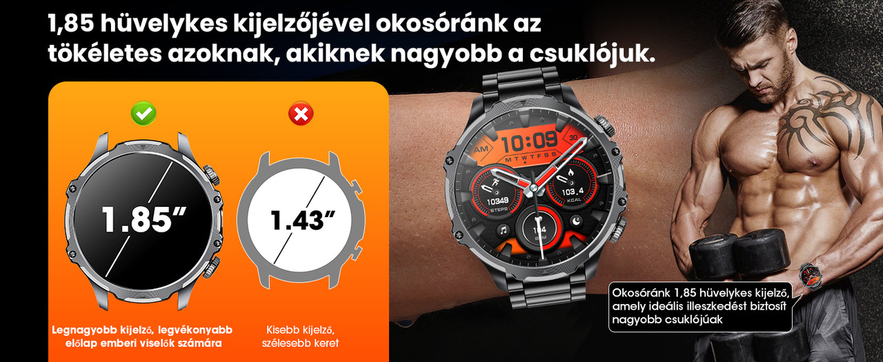 Okosóra, jiesuo, KT75 modell, 1,85" kijelző, zseblámpa, 700 mA-es akkumulátor, Bluetooth hívások, intelligens értesítések, mozgás mód, alvó üzemmód, pulzus- és oxigénfigyelés, fekete acél szíj